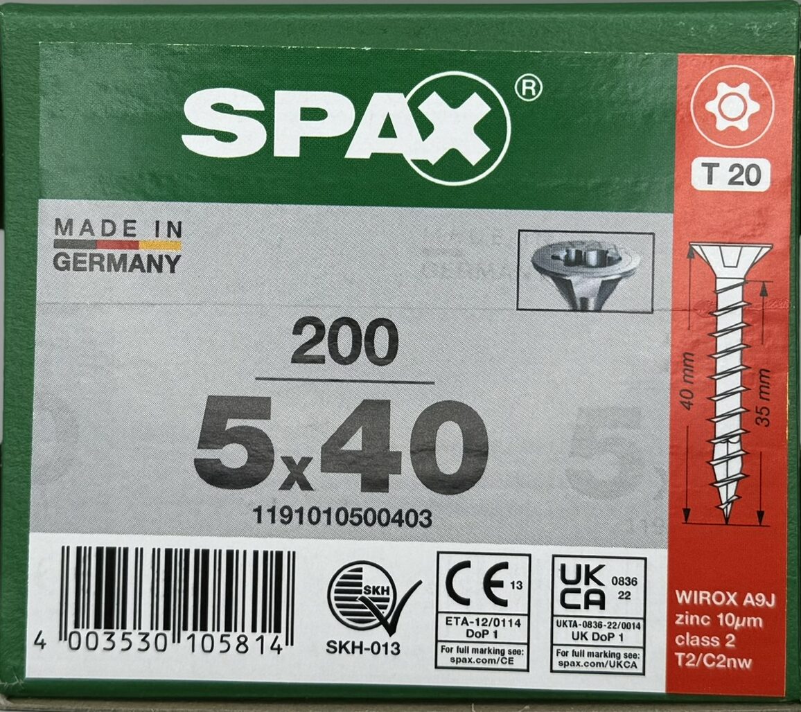 Spax Spaanplaatschroeven 5.0 x 40 mm T20 Voldraad – 200 stuks