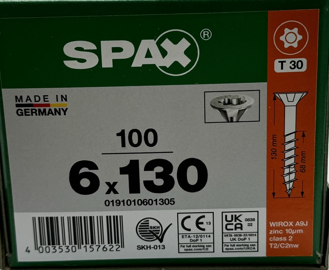 Spax Spaanplaatschroeven 6.0 x 130 mm T30 Deeldraad – 100 stuks