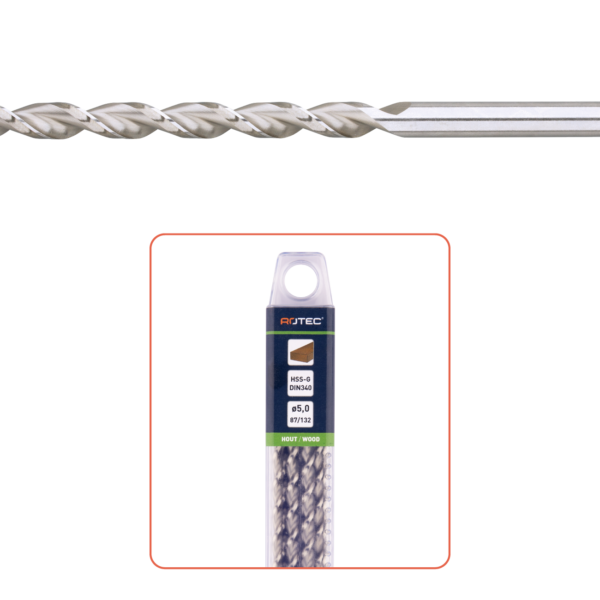 Rotec HSS-G Houtspiraalboor lang, DIN 340, TLS, ø5,0x87x132 – 5 stuks per koker